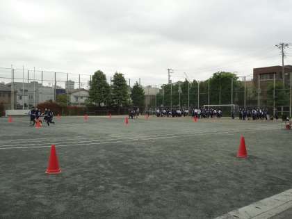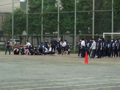 2年生は運動に向けて学年全体練習をしました。団体種目のハリケーンの練習です。