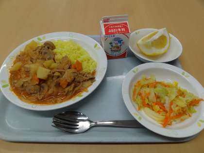 今日の献立は、ハッシュドライス、コーンサラダ、河内晩柑、牛乳です。河内晩柑(かわちばんかん)は別名「美生柑(みしょうかん)」といって、大正時代に熊本県河内町(かわちちょう)の民家の庭で偶然発見されました。「美生柑」の名前は愛媛県にある御荘町(みしょうちょう)が元になっています。