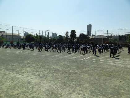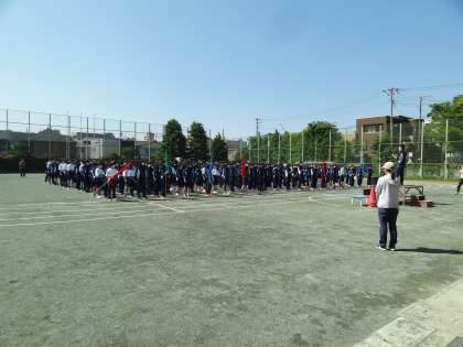 1回目の全体練習を行いました。朝礼台前に整列を完了し、開会式の流れの確認をしました。次にラジオ体操を行いました。列がしっかり整っていて、静かに話を聞いている態度を見て、運動会への意気込みを感じました。