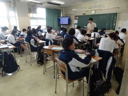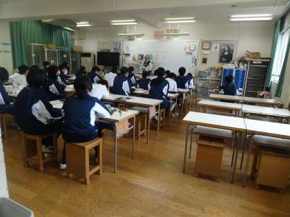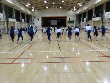 1年生の美術、国語、保健体育です。体育はバトンパスの練習です。