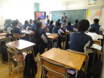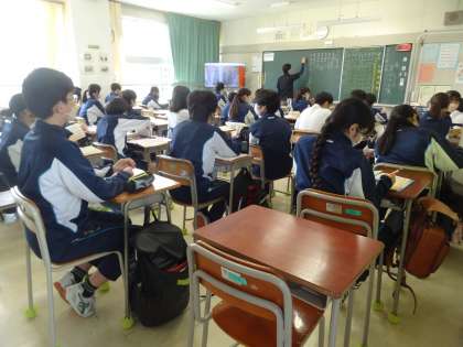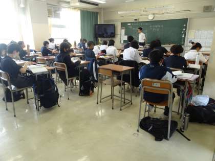 1校時の1年生は保健体育、数学(写真)です。2年生は理科、美術、国語(写真)です。3年生は英語(写真)、音楽です。
