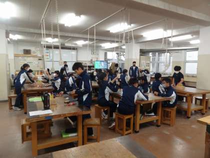 1校時の1年生は理科、音楽、保健体育(写真)です。2年生は技術(写真)、保健体育、英語です。3年生は社会、数学(写真)です。