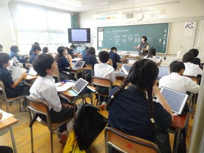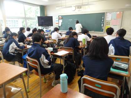 今日は1時間目だけの授業です。この後小学生の体験入学と新入生保護者説明会があります。1校時の1年生は理科(写真)、保健体育(写真)、国語です。2年生は英語(写真)、保健体育です。
