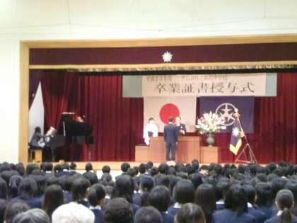 春の明るい日差しの中、たくさんのご来賓、保護者の皆様にご参列いただき、135名の3年生がめでたく卒業しました。厳粛な中にも感動的な卒業式だったとご来賓の皆様からお言葉をいただきました。特に、卒業生の合唱は素晴らしく、会場に響き渡りました。卒業生のみなさん、ご家族のみなさま、ご卒業、本当におめでとうございます。