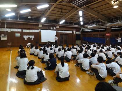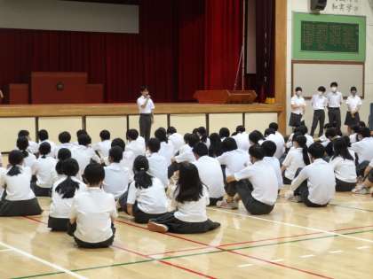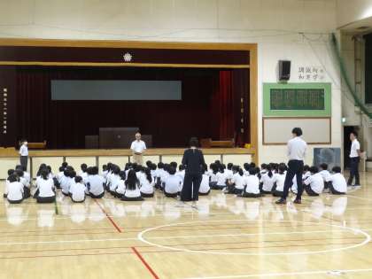終業式の後、各学年で学年集会を開きました。この後、学級にて通知表を渡します。