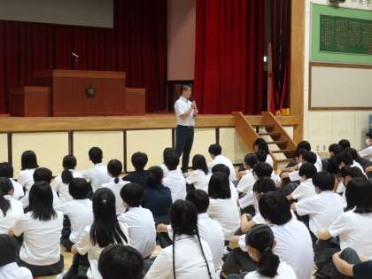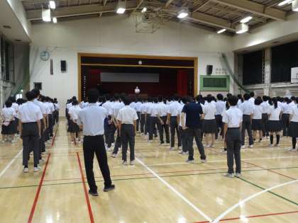 2学期が始まりました。体育館で校歌を歌い、気持ちを引き締めました。