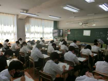 第2学年では、夏休み明けテストとして漢字、数学、英語のテストに取り組みました。夏休み中の学習成果を発揮することはできたでしょうか。テストの結果に一喜一憂するのではなく、自分の現状を的確に把握し、改善していくきっかけにしてください。(第2学年主任 木村)