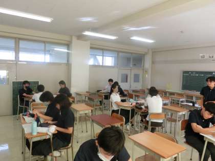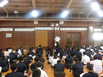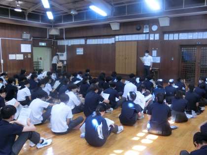1校時の総合的な学習の時間では、明日からの職場体験学習に向けて事業所ごとの最終確認、生徒全体への事前指導を行いました。3日間の体験において、「体験あって苦労なし」では皆さんのこれまでの準備や受け入れてくださる事業所の方の苦労が無になってしまいます。働くことの意義や目的を理解し、望ましい職業観、勤労観を身に付けられる機会としてください。働く先が「学校」、指導してくださる方が「先生」です。皆さんの成長を、心から期待しています。
