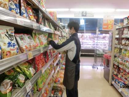学校用務とスーパーマーケットでの体験の様子です。