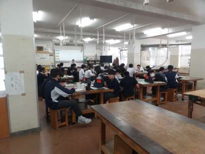 1校時の1年生は数学、理科(写真)、保健体育です。2年生は国語、保健体育、技術(写真)です。3年生は国語、社会(写真)、理科です。