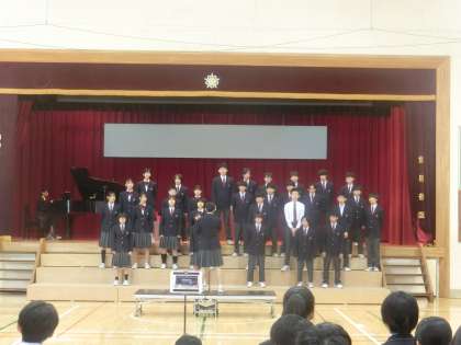 1校時に、今週本番の合唱コンクールに向けてリハーサルを実施しました。一通りの流れを確認し、いよいよ各学級での合唱練習も大詰めです。ここからさらに大切なことは何でしょうか。歌う技術も大切ですが、それ以上に歌い手の「心」が大切です。合唱は誰のためにやるのでしょう。誰のためでもなく、自分たちのためです。自分たちで協力して、歌に思いを乗せ、良い合唱を作るのです。その意識を一人一人がもてば、2年生全体の歌声がより良くなります。その力があると信じています。残りの3日間、さらに頑張りましょう。(第2学年主任 木村)