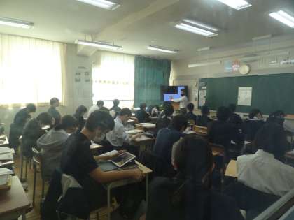 3校時の1年生は、国語(写真)、英語、保健体育です。2年生は数学(写真)、理科です。3年生は社会(写真)、英語、音楽です。