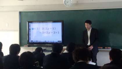 今日は、2年生の数学の授業で、デジタル教科書を大型テレビに映し、計算問題(1年生の復習)を進めている場面を参観しました。