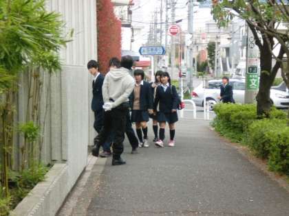 朝、正門であいさつをしてくれる生徒たち、みんな笑顔です。笑顔で登校し、笑顔で元気に下校する、そんな学校にしていきたいと思います。正門にある竹の色もだんだん濃くなってきています。