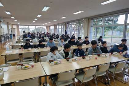 朝食です。静かに、いただきます、を待ちます。