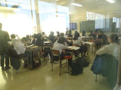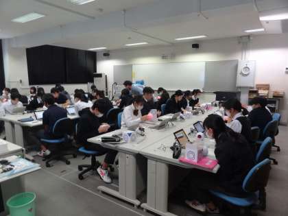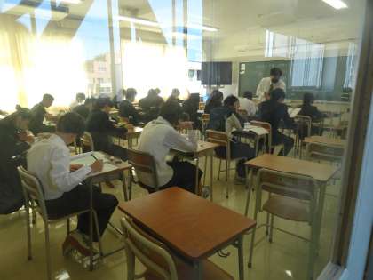 3校時の1年生の授業は、水溶液の濃度(理科)、助動詞can(英語・写真付き)です。2年生は、Tボール(保健体育)、一次関数のグラフ(数学・写真付き)です。3年生は、三権分立(社会)、太陽の動き(理科)、プログラミング(技術・写真付き)です。