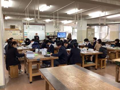 2校時の1年生の授業は、合唱など(音楽)、Unit7のまとめ(英語)、ヨーロッパ州のまとめ(社会)です。2年生は、形容詞(国語)、トランジスタの取り付け(技術・写真付き)、対照実験(理科)です。3年生は、ダンス(保健体育・写真付き)、日本国憲法(社会)、テストまとめ(理科)です。