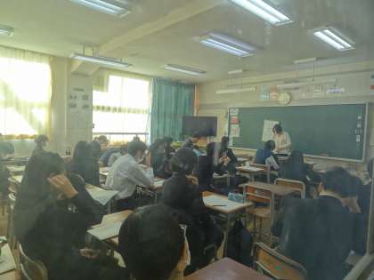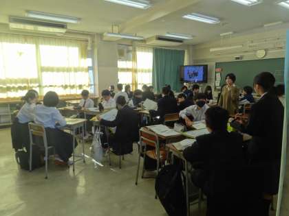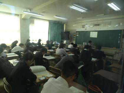 1校時の1年生の授業は道徳です(写真付き)。2年生は進路学習です(写真付き)。3年生は小論文の学習です(写真付き)。