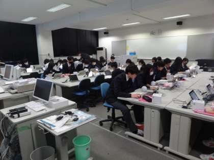 1校時の1年生の授業は、現在進行形(英語・写真付き)、ダンス(保健体育)です。2年生は、形容動詞(国語)、和式・様式の住居(家庭科)、天気図(理科・写真付き)です。3年生は、社会、誰かの代わりに(国語)、プログラミング(技術・写真付き)です。