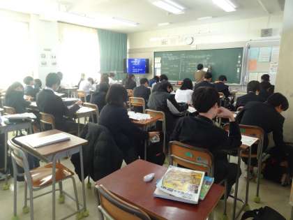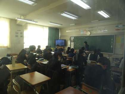 3校時の2年生の授業は、仁和寺にある法師(国語)、領土問題(社会・写真付き)、ダンス(保健体育・写真付き)です。3年生は、英語、相似な立体の表面積と体積(数学・写真付き)です。