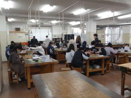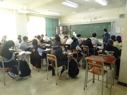 今日はカジュアルデーです。1校時の1年生の授業は、ダンス(保健体育)、凸レンズのしくみ(理科)、おうぎ形(数学・写真付き)です。2年生は、レリーフ製作(美術)、ダイナモ作り(技術・写真付き)、ダンス(保健体育)です。3年生は、天体(理科)、書道(国語)、悪徳商法について(社会・写真付き)です。