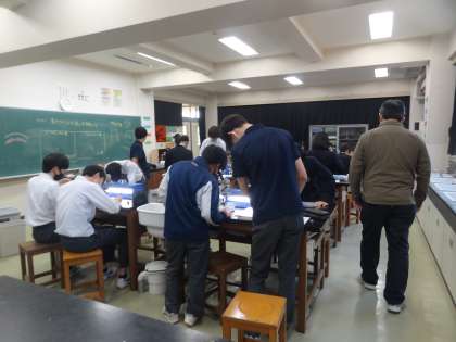 2校時の1年生の授業は、リコーダー(音楽)、英語、モンゴルの襲来(社会・写真付き)です。2年生は、漢詩の風景(国語)、立体感のある平面構成(美術)、茎のつくりの違い(理科・写真付き)です。3年生は、理科、社会、ダンス(保健体育・写真付き)です。