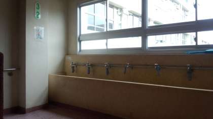 右の写真は、中央階段の水飲み場です。蛇口がいつも下を向いていて、しかも排水口がきれいに掃除されています。私はこれまで数多くの学校を訪問しましたが、水飲み場やトイレ、廊下を見ると、その学校のおおよその様子が分かるものです。このようなよい環境も、駒沢中学校の先輩たちが大事に守ってきた校風なのではないかと思います。