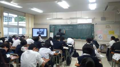 中の写真は、1年生数学の授業です。「よい授業に学ぶ」をテーマにした区の初任者研修会の「授業の手本」として認められ、区内のたくさんの初任者が参観しました。