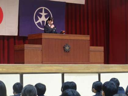 令和5年度修了式が行われました。各学年代表生徒に修了証書を授与しました。そして各学年代表生徒から今年度の振り返りと来年度への抱負を話し、校歌を歌いました。皆さん、進級おめでとうございます!