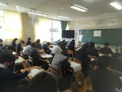 今日は全学年で学習習得確認調査を実施します。調査する科目は、国語、数学、社会、理科、英語(2、3年生)です。