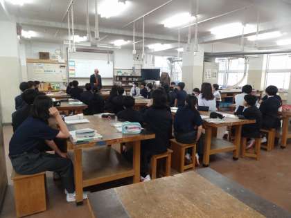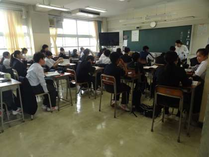 1校時の1年生の授業は、美術、ガイダンス(技術・写真付き)、国語(写真付き)です。