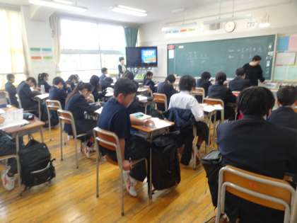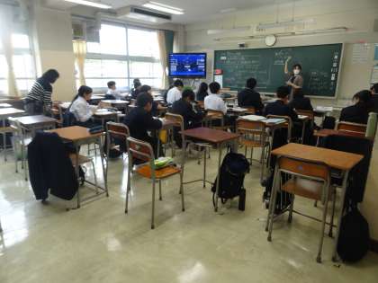3校時の1年生の授業は、符号のついた数(数学)、英語です。