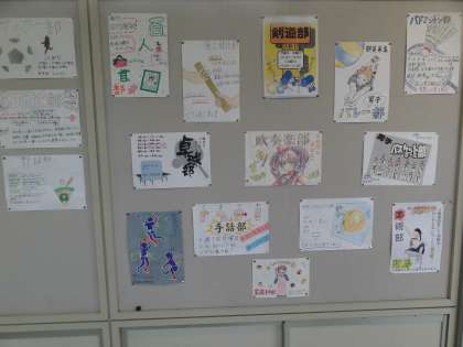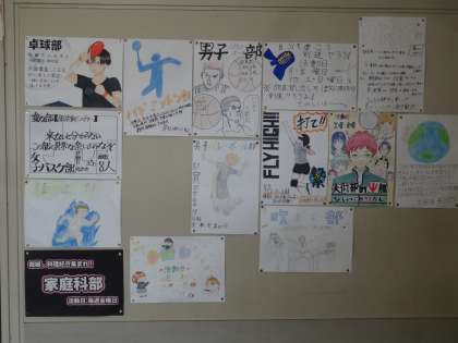 おはようございます。今朝は雨模様です。今日は生徒会朝礼があります。気を付けて登校してください。さて、昨日で部活動の仮入部期間が終わりました。どの部活動に興味を持ちましたか?1年生の入部申込書の提出期限は25日(木)です。今日も一日頑張りましょう。写真は、職員室前と音楽室前のポスターです。