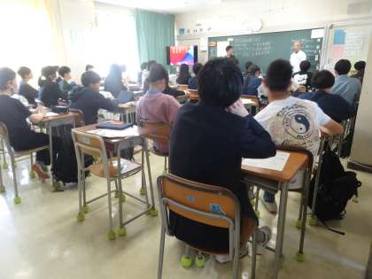3年生もカジュアルデーです。1校時の授業は、国語(写真付き)、英語、プログラムを図で表す(技術・写真付き)です。