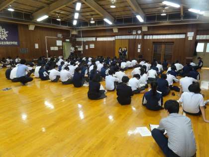 3年生は明日から修学旅行に行きます。行く前の確認をしおりを見ながら各担当の代表者から説明がありました。3年生の皆さん、気を付けて行ってらっしゃい!
