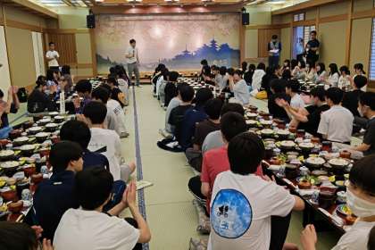 到着式です。飛鳥荘の皆様、今日から一泊しますので、よろしくお願いします。