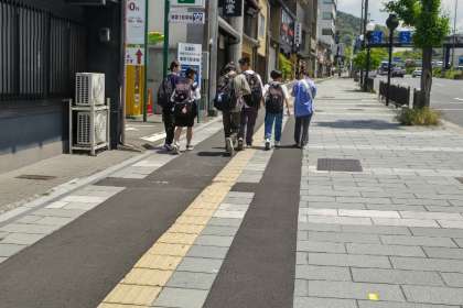 清水寺に向かう班を発見しました。清水寺のチェックポイントに着きました。