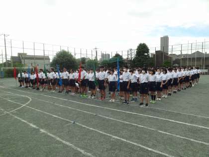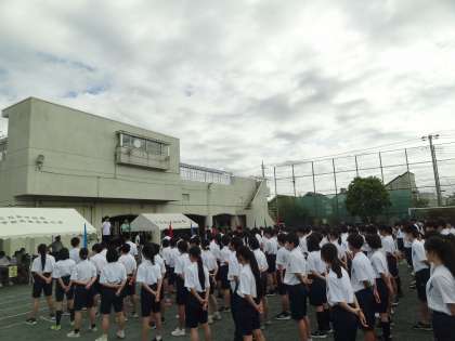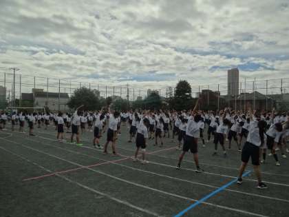 予定通り運動会予行練習を行いました。写真は開会式、ラジオ体操です。