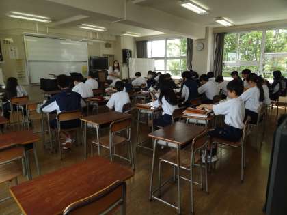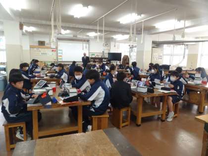 1校時の2年生の授業は、枕草子(国語)、リコーダー(音楽・写真付き)、抵抗器の測定(技術・写真付き)です。