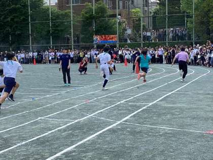 運動会の午後の部が始まりました。部活動リレーの様子です。