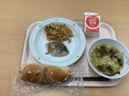 今日の献立は、コッペパン、さわらの香味焼き、おひたし、みそ汁、牛乳です。