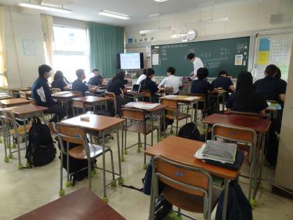 2校時の授業は、現在完了形(英語・写真付き)、社会、数の世界の広がりを振り返る(数学・写真付き)です。