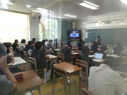 5校時の授業は、水の電気分解(理科・写真付き)、接続詞(英語・写真付き)です。