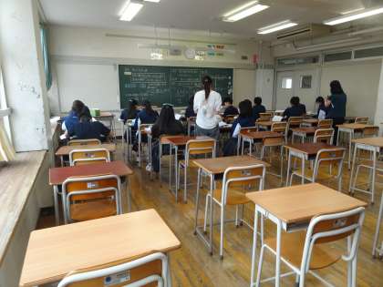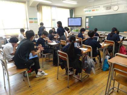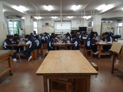 1校時の授業は、英語、正投影図(技術)、代入と式の値(数学)です。