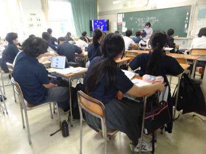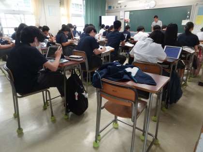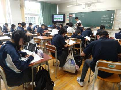 5校時の2年生の授業は、何故幕府は改革を進められていったのだろうか(社会)、有酸素運動(保健体育・写真付き)、元素記号(理科・写真付き)です。3年生は、平方根の乗法や除法について考えよう(数学)、保健体育(写真付き)です。なお、本日は5時間授業です。