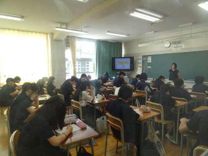 2校時の2年生の授業は、ハンドボール投げ(保健体育)、リスニングテスト(英語)です。