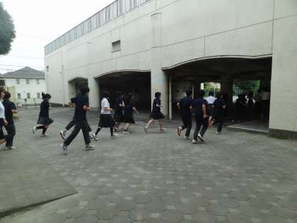 今日は、火災が発生したことを想定しての避難訓練でした。炎と煙に気を付けて避難しましょう、という話がありました。皆さんハンカチを常に持ちましょう。