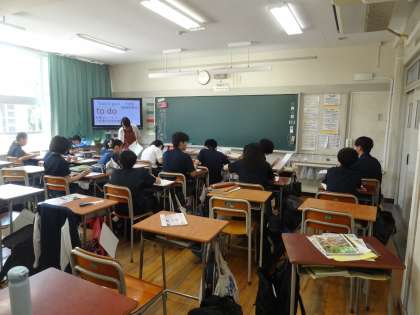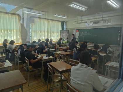 本日から土曜日まで学校公開をしています。2校時の2年生の授業は、数学(写真付き)、不定詞(英語・写真付き)です。3年生は、斜面を下る物体の運動(理科・写真付き)、沖縄戦(社会)、月の公転(理科)です。