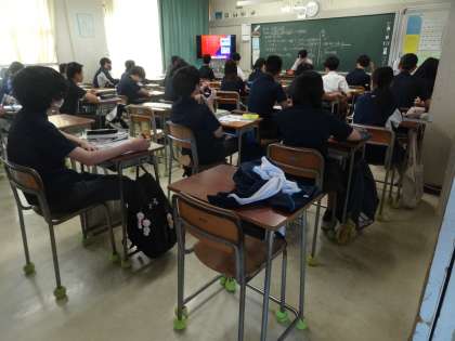 本日も学校公開をしています。2校時の授業は、恒星(理科)、発表(国語)、占領下の日本(社会)です。