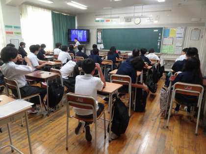 1校時の1年生の授業は、聞き上手になろう(国語・写真付き)、リコーダー(音楽)、エジプト文明(社会)です。3年生は、プール(写真付き)、理科、敬語(国語・写真付き)です。